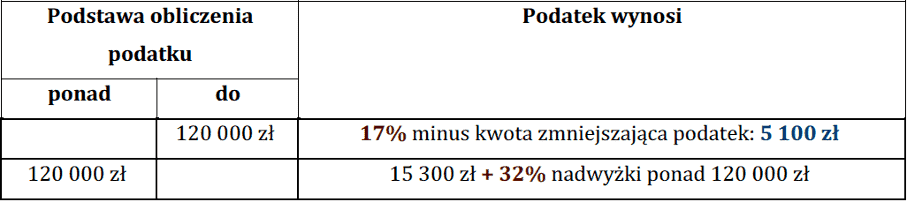 Podatek dochodowy (z zastrzeżeniem art. 29-30f ustawy o PDOF), pobiera się od podstawy jego obliczenia według następującej skali (art. 27 ust. 1 ustawy o PDOF):